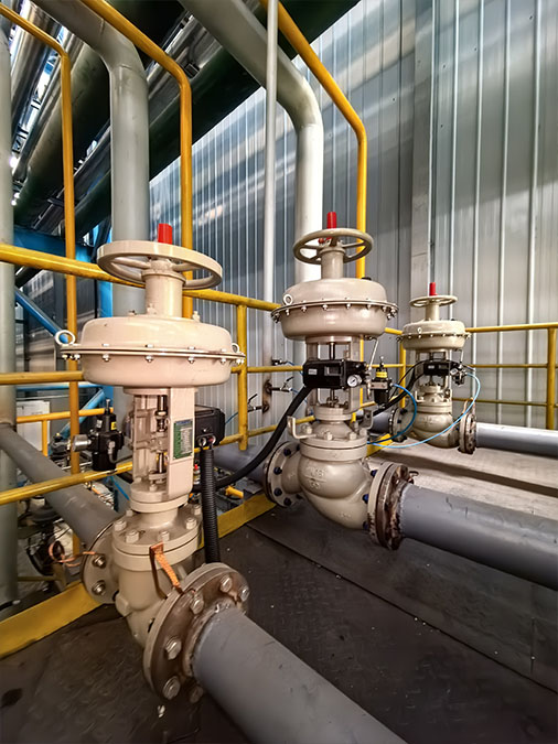 Steel & Metallurgical Industry Condensate Water System of the Power Plant: Manual and Pneumatic Double Eccentric Butterfly Valve and Pneumatic Ball Valve with Class 300#, Pneumatic Regulating Double Eccentric Butterfly Valve with Class 300#, Pneumatic On-off and Regulating Rubber Lined Diaphragm Valve, Pneumatic Three-Way Control Valve, Check Valve with Class 300#, etc.